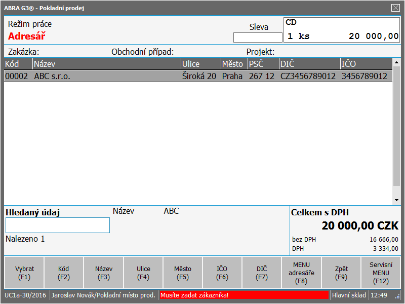 - Volbou Adresář z režimu Prodej kasy pokladního prodeje.