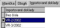 | Obsažené subzáložky: | Hlavička | Firma | Obsah | Šarže/s.čísla | Rozúčtování | Importované doklady | Ruční párování | EET | Formuláře |
