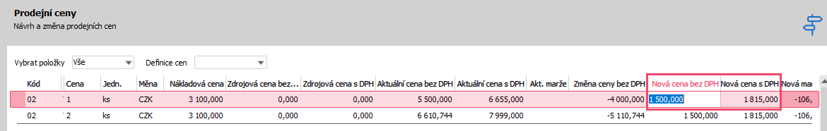 Nechť má uživatel v hlavním ceníku např. 5 prodejních cen a 70000 skladových karet. V ceníku pro firmu je jen 7000 položek a ty je třeba přecenit dle hlavního ceníku, kde bylo postupně provedeno velké množství změn. Pomocí vhodného nastavení parametrů ve funkci Přecenění toto lze snadno provést.