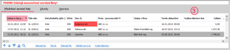 Jedná se o prvek needitovatelný seznam. Zobrazuje závady zadané na aktuálním SL z vedlejší subzáložky Předchozí servisní listy. Význam jednotlivých zde zobrazených položek vyplývá z jejich názvu nebo z jejich popisu v seznamu závad daného servisního listu (SL). Zde objasníme pouze následující: