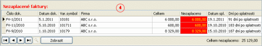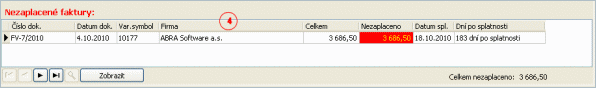 - Pro pohyb kurzoru po řádcích (na začátek, předchozí řádek, další řádek, na konec) seznamu nezaplacených dokladů a hledání hodnoty v seznamu.