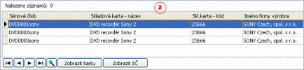 - Pro pohyb kurzoru po řádcích (na začátek, předchozí řádek, další řádek, na konec) seznamu dohledaných sér. čísel a hledání hodnoty v seznamu.