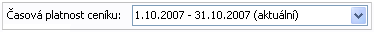 Jelikož se jedná o záložku, kde zobrazené hodnoty závisí na zvoleném období platnosti ceníku, je v horní pravé části záložky dále k dispozici panel pro volbu zobrazované platnosti ceníku: