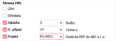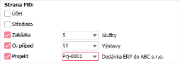 V tomto případě se na všechny označené účtované žádosti doplní zadaná zakázka, obchodní případ a projekt na stranu MD (bez ohledu na to, zda na nich nějaká již byla zadána či nikoliv).
