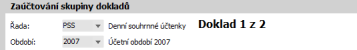 Pokud není žádná žádost označena a vyvolá se funkce Zaúčtovat, bude se provádět zaúčtování celé skupiny záznamů, na které se v záložce Seznam nachází kurzor, tj. prvním kroku průvodce zaúčtováním se k zaúčtování nabídnou nejdříve údaje prvního účetního zápisu z dané skupiny (bez ohledu na to, na kterém z nich stojí aktuálně kurzor), v dalším kroku pak dalšího v pořadí atd. (Jak bylo objasněno dříve, v jedné skupině jsou účetní záznamy pocházející z téhož dokladu, tj. např. základ a DPH faktury, řádky souhrnné účtenky apod.).