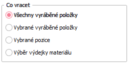 Přepínač Co vracet specifikuje způsob výběru materiálu: