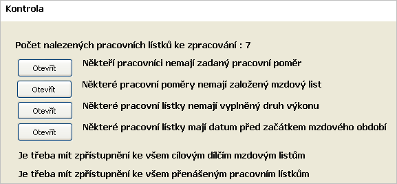 - Kontrola skrytých zaměstnanců - Zkontroluje, zda nějaký zaměstnanec, odpovídající pracovníkovi výroby z přenášených PL nebyl skryt. Pokud ano, nelze pokračovat.