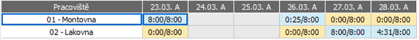 Buňky kap. plánu se zatrženým parametrem Pozastavit do konce směny. Použití je vhodné např. v provozu, ve kterém jedno pracoviště převáží z důvodu efektivity hromadně výsledek své práce až na konci směny dalšímu pracovišti. |