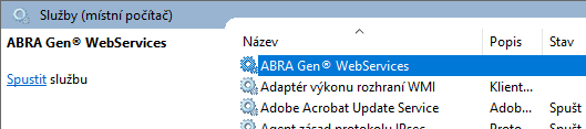 - mít nainstalovanou službu ABRA Server webových služeb a mít ji spuštěnu (pokud jej provozujete jako službu (doporučeno)),