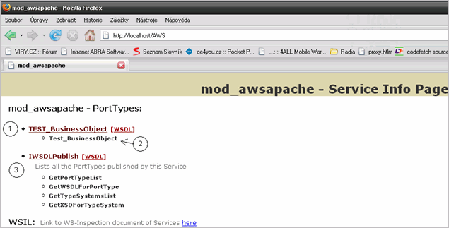 Obrázek 1. Body 1 a 3 jsou Webové služby, bod 2 je operace ve vybrané službě.
