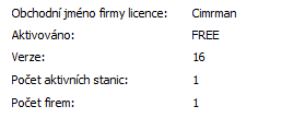 1. Podařilo se systém zaktivovat pro zadanou firmu, tj. v horní části obrazovky v agendě Správa licencí je uvedena firma Cimrman dle obrázku výše?