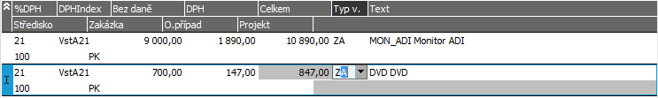 Příklad řádků faktury přijaté.