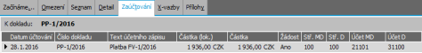 Příklad zobrazení zaúčtování zadané platby.