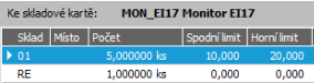 Tedy počet na hlavním skladu je 5ks, spodní limit 10ks.