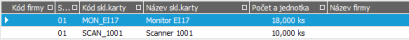 Přehled o objednaném zboží MON_EI17, tedy zbývá dodat 10ks.