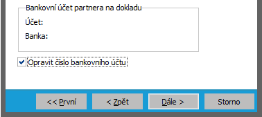 Zatržení volby Opravit číslo bankovního účtu způsobí, že bude k dispozici navíc další krok průvodce, kde budeme moci účet dodavatele zadat.