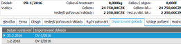 1. Zkontrolujeme si, jak se promítlo zadání příjemky podle objednávky vydané (tj. import objednávky vydané do příjemky) na oba doklady. Otevřeme agendu Objednávky vydané. Viz modul Nákup→záložka Objednávky a dodavatelské ceníky. Prohlédněte si záložku X-vazby objednávky OV-3/2016, kterou jste importovali do příjemky dle textu výše. Máte v záložce X-vazby uvedenu příjemku, jak je naznačeno na obrázku?