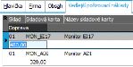 1. Zkontrolujeme si, jak se vedlejší pořizovací náklady promítly na skladovou kartu. Otevřeme agendu Skladové karty. Viz modul Skladové hospodářství→záložka Zboží a výrobky. U karty (MON_ADI) z příjemky zkontrolujeme záložku Dílčí karty. V položce "Dopl. poslední pořizovací cena" byste měli mít uvedenu částku zadaného vedlejšího pořizovacího nákladu: