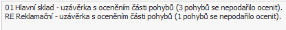Skladové pohyby po provedené skladové uzávěrce.