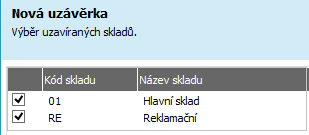 V dalším kroku průvodce zvolíme sklady, pro něž se má uzávěrka provést: