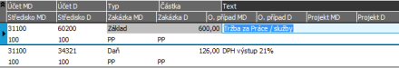 Výsledné řádky účetního zápisu pro náš doklad, které jsou v účetních žádostech.
