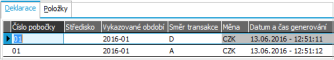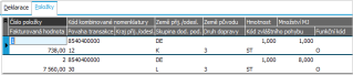 V subzáložce Položky jsou na jednotlivých řádcích zobrazeny částky a další údaje, které tvoří vlastní hlášení INTRASTAT: