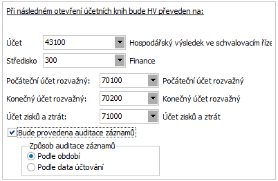 Dále zadáme účty pro uzavření a otevření účtů: