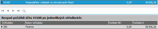 1. Zkontrolujeme si, jakým způsobem se nám promítla účetní uzávěrka do agendy počátků účtů. Otevřete si Počátky účtů za období 2017. Zkontrolujte si např. počátek pro účet 43100 se střediskem 300. Odpovídá jeho počátek spočtenému hospodářskému výsledku (viz obrázek výše)?