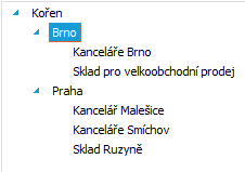 Firmě ze zadaného příkladu zavedeme následující strukturu umístění: