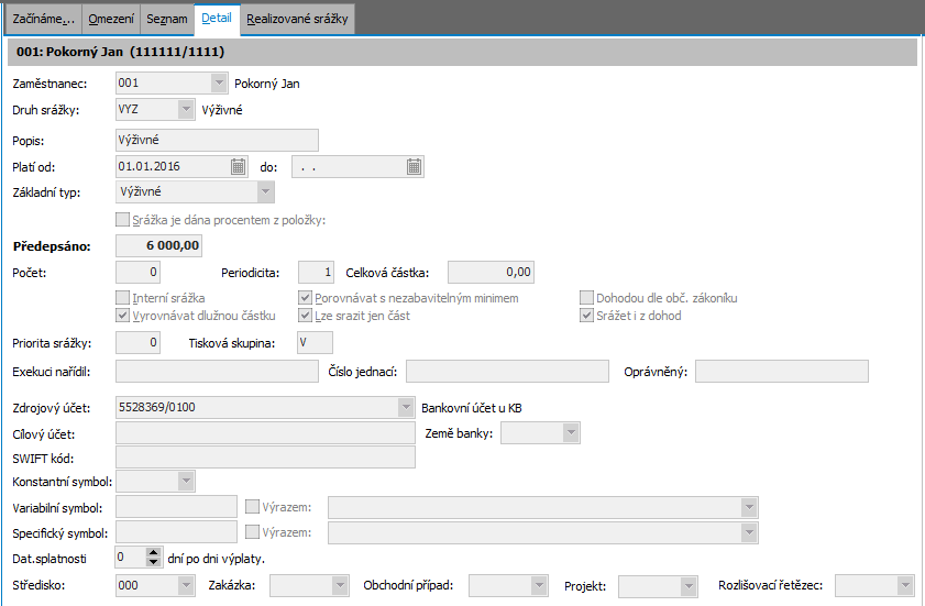 Dále viz podrobný help. Kap.: Srážky ze mzdy.