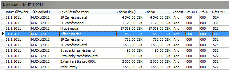 Tj. vytvořilo se odpovídající množství účetních žádostí na zaúčtování různých mzdových složek za všechny zpracované zaměstnance.
