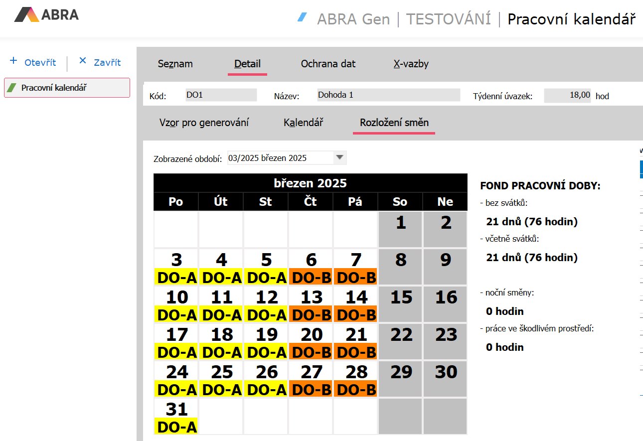 Nyní je pracovní kalendář DO1 připraven k použití a k připojení k vybranému pracovnímu poměru daného zaměstnance.