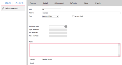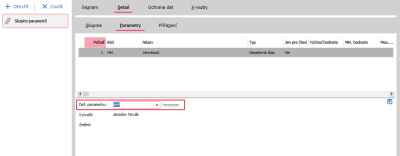 Tímto jsme si připravili parametry, které následně využijeme v agendě Skupiny parametrů.