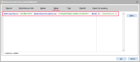 Na konec návodu si ukážeme, jak lze s parametry pracovat na úrovni např. tiskových sestav. Stejný postup by ale bylo možné použít například pro sloupce nebo panely definovatelných údajů.