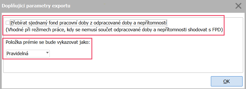 Přebírat sjednaný fond pracovní doby z odpracované doby a nepřítomnosti - Tuto možnost doporučujeme zvolit v případě, kdy se fond pracovní doby daný pracovním kalendářem neshoduje se součtem skutečně odpracované doby a zadaných nepřítomností zaměstnance.