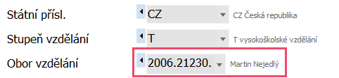 - Stupeň vzdělání → Trexima položka VZDELANI