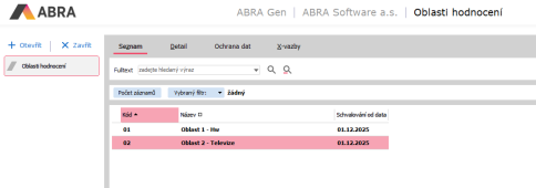 Musíme mít zadaná kritéria hodnocení a oblasti hodnocení.