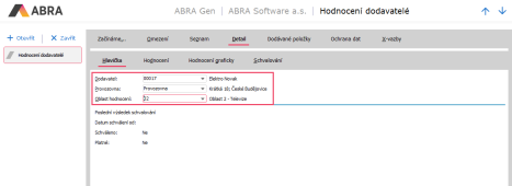 V záložce Hodnocení dodavatele zadáme nějakou známku a uložíme: