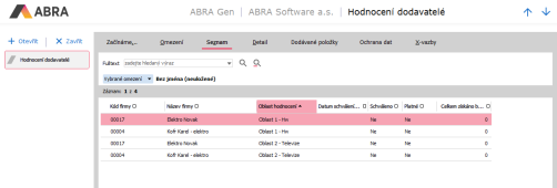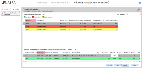 Věcný obsah, pojmy, viz kap. Hodnocení a schvalování dodavatelů obecně. Nyní si ukážeme použití.