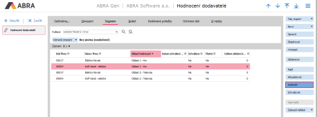 Nyní vybereme dodavatele a zvolíme funkci Hodnotit: