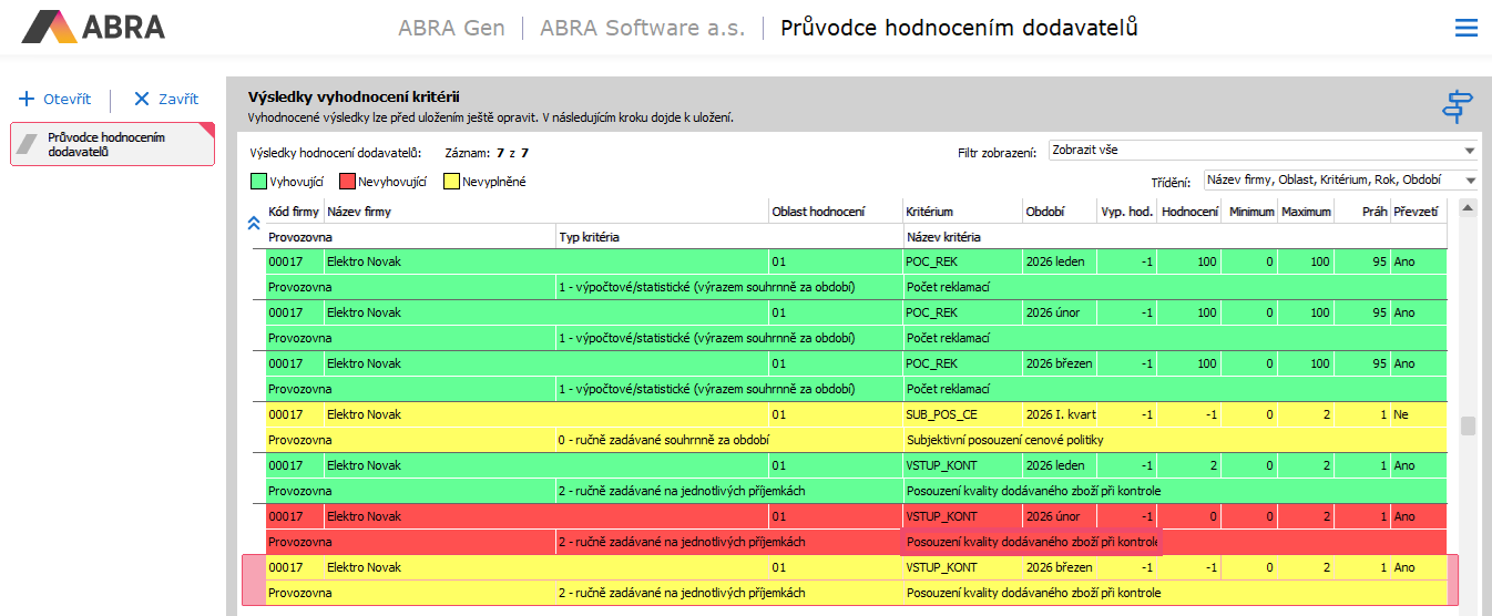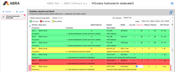 Takto můžeme vyhodnotit i další dodavatele. Lze hodnotit i více dodavatelů najednou.