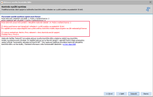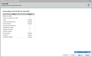 V následujícím kroku probíhá kontrola počtu licencí proti reálnému využití licencí za posledních 30 dnů. Licence, které nejsou v novém modelu dostatečné, jsou vypsány červeně. V našem případě nemáme dostatek licencí na aktivní pracovní poměry (sčítají se napříč přes všechna databázová spojení) a také jsme v předchozí licenci měli licencováno v rámci multilicence více firem.