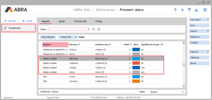 Otevřeme si agendu Procesní stavy. Vidíme, že pro skladové doklady jsou zde připraveny čtyři základní procesní stavy: