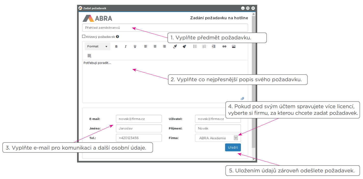 Zadání požadavku na ABRA Helpdesk |