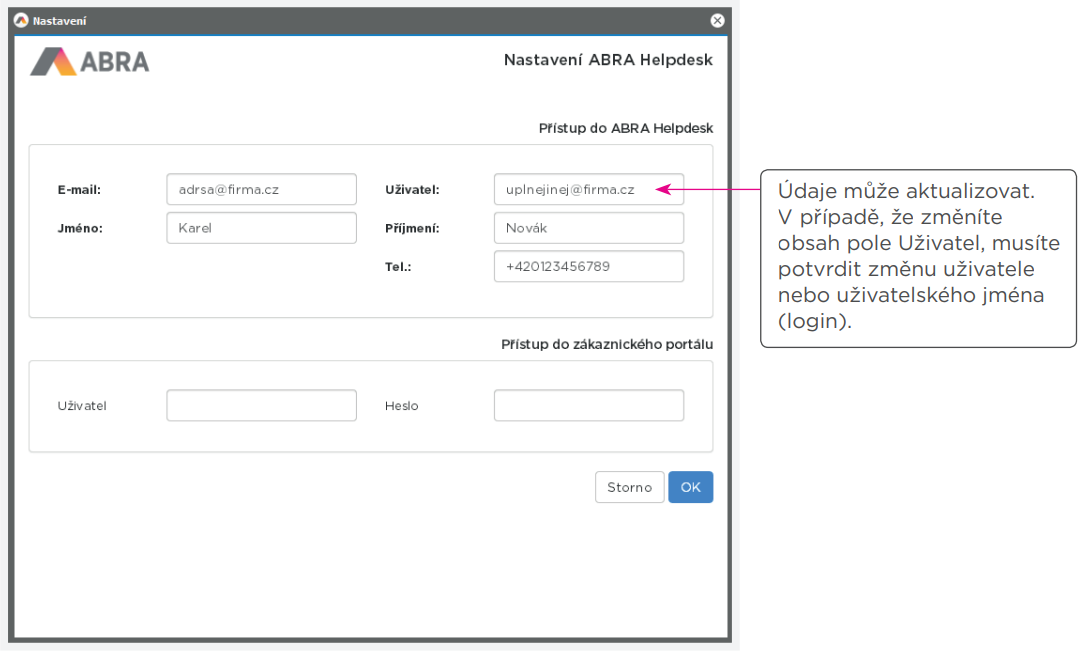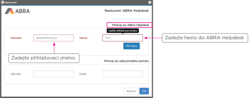 Zadání přihlašovacího účtu do ABRA Helpdesk, když: