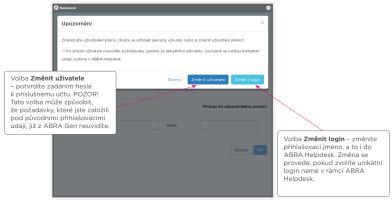 Změna uživatele nebo přihlašovacího jména |
