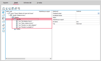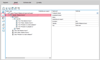 Otevře se Editor definic exportu, kde klikneme na název Export (viz obrázek), čímž se zobrazí vpravo vlastnosti exportu.