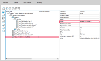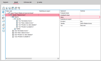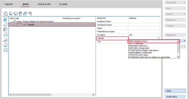 Do exportu se vloží Tabulka. V její pravé části pod názvem Tabulka je potřeba vybrat, z jaké tabulky datového zdroje budeme data potřebovat. Vybereme první možnost Main=Skladové karty.
