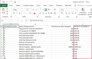 Výsledek v Excelu bude bez skladových karet s množstvím menším než 100.