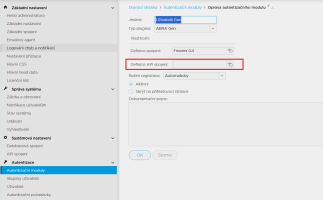 Přiřazení vytvořeného API spojení ke stávajícímu autentizačnímu modulu.